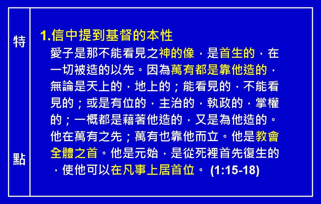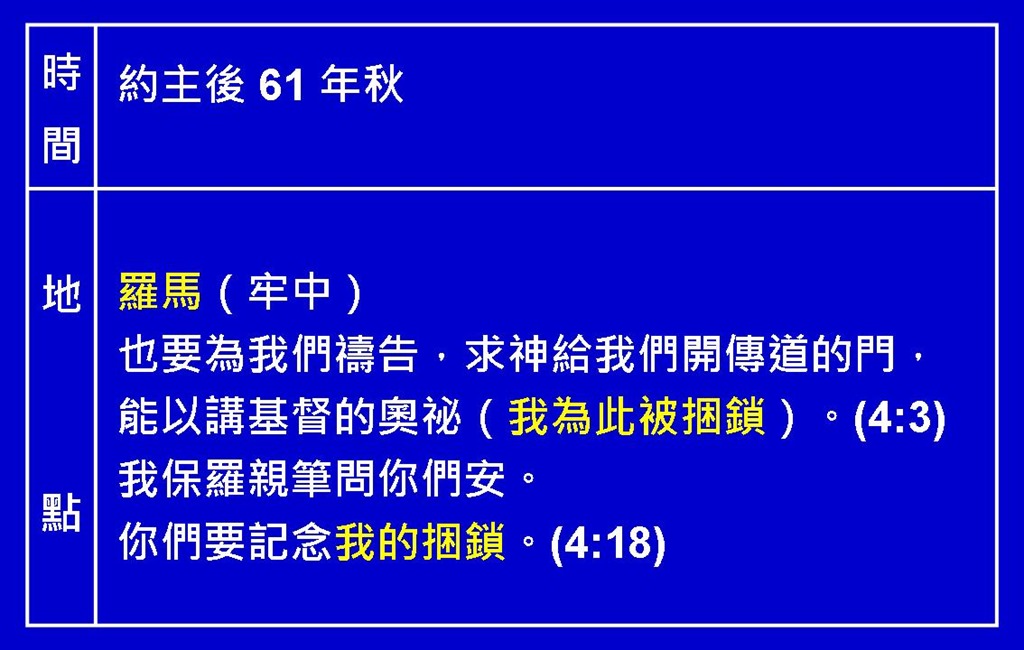 本篇發表於 12.歌羅西書, G.新約單卷查經。將永久鏈結加入書籤。