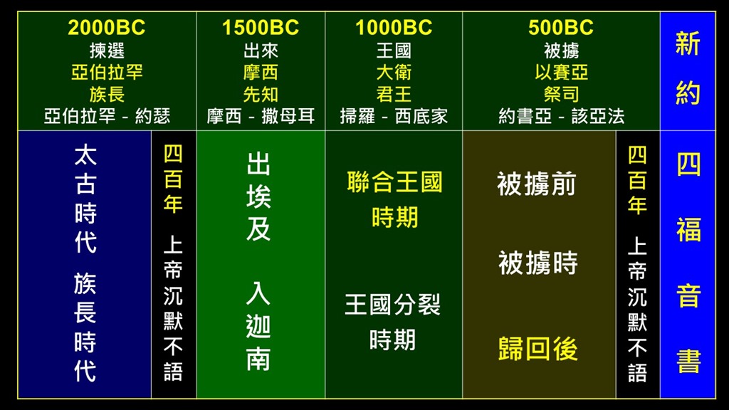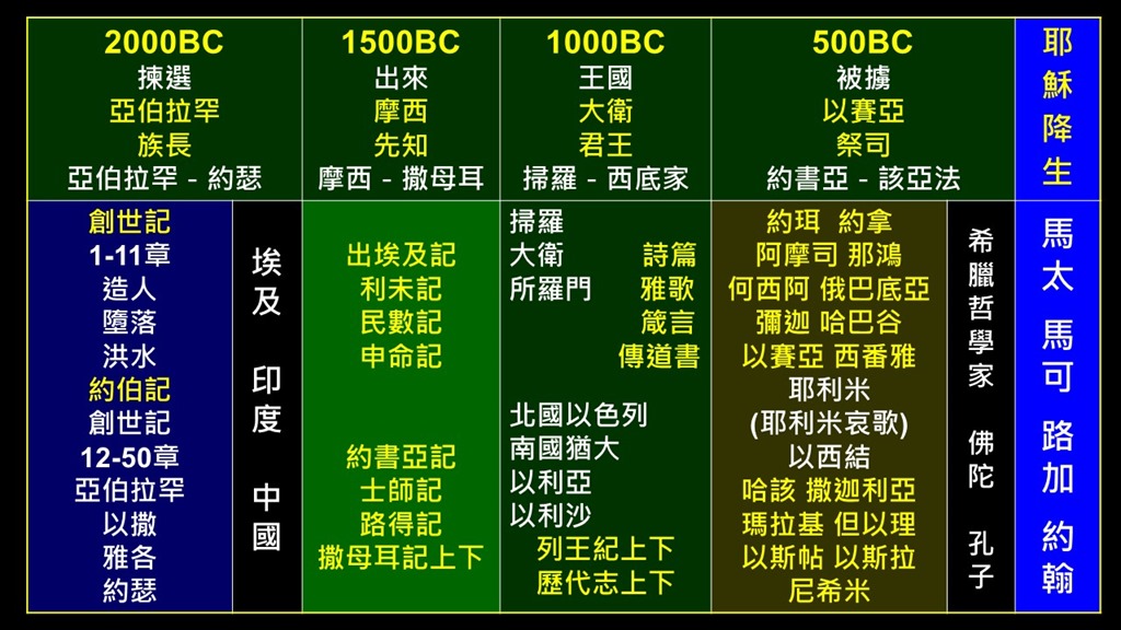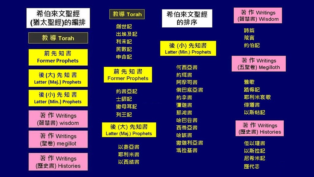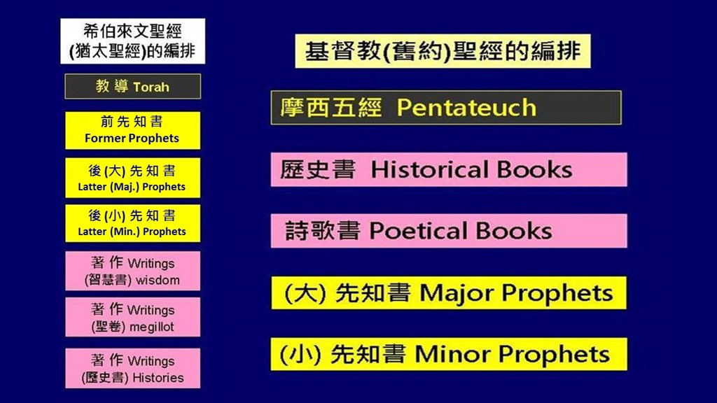 舊約聖經涵蓋了兩千年以上的時間,有許多不同的作者,和許多不同性質的書卷──歷史書、律法書、詩歌書、先知書。我們務必要了解舊約39卷書之間的關聯,上帝賜給我們的聖經並不是按主題分類,相同主題的經文往往分散在各處。上帝是一卷一卷地給我們聖經,所以我們也應該一卷一卷地研讀。上帝給我們的書卷有時空的背景,我們務必要了解祂在什麼時候和什麼地方說這些話,時空會賦予這些話含意,因為祂是在某個時空針對某個情況說話。