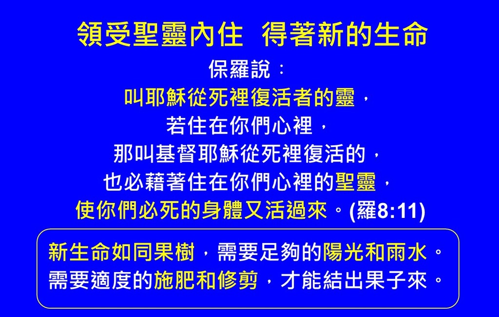 主耶穌說:「叫人活著的乃是靈,肉體是無益的。我對你們所說的話就是靈,就是生命。」(約6:63)