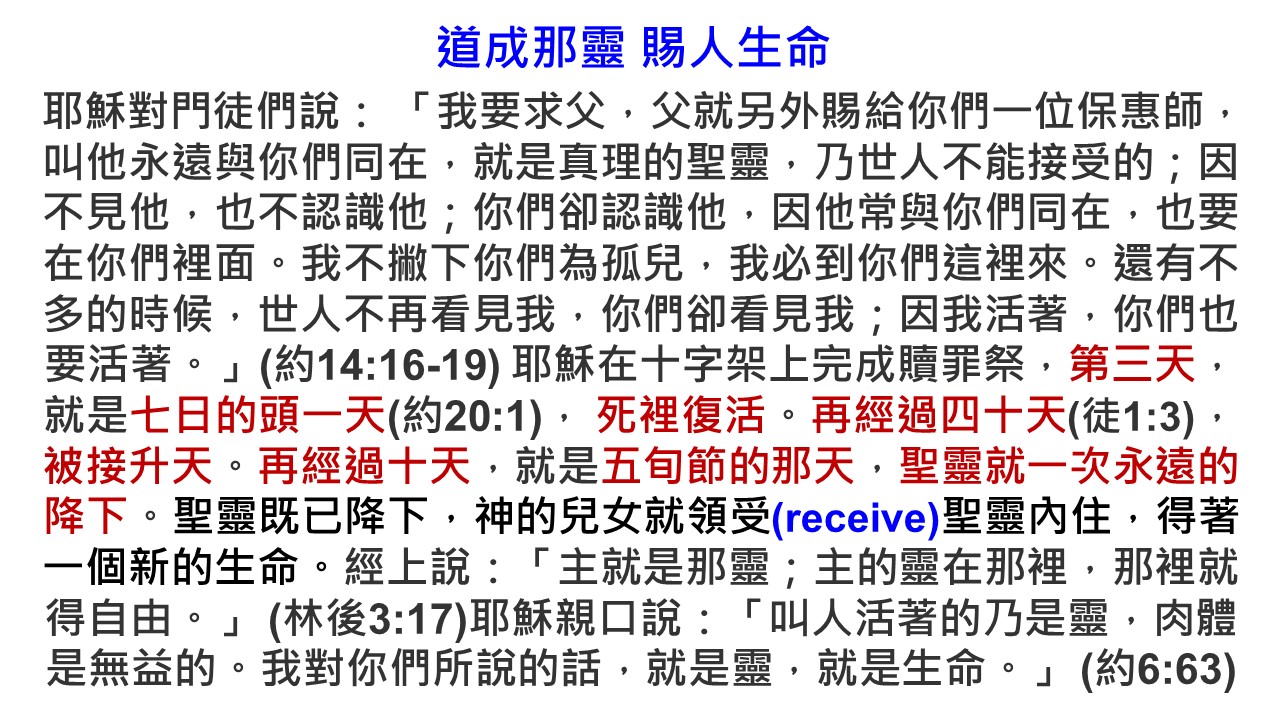 主耶穌說:「叫人活著的乃是靈,肉體是無益的。我對你們所說的話就是靈,就是生命。」(約6:63)