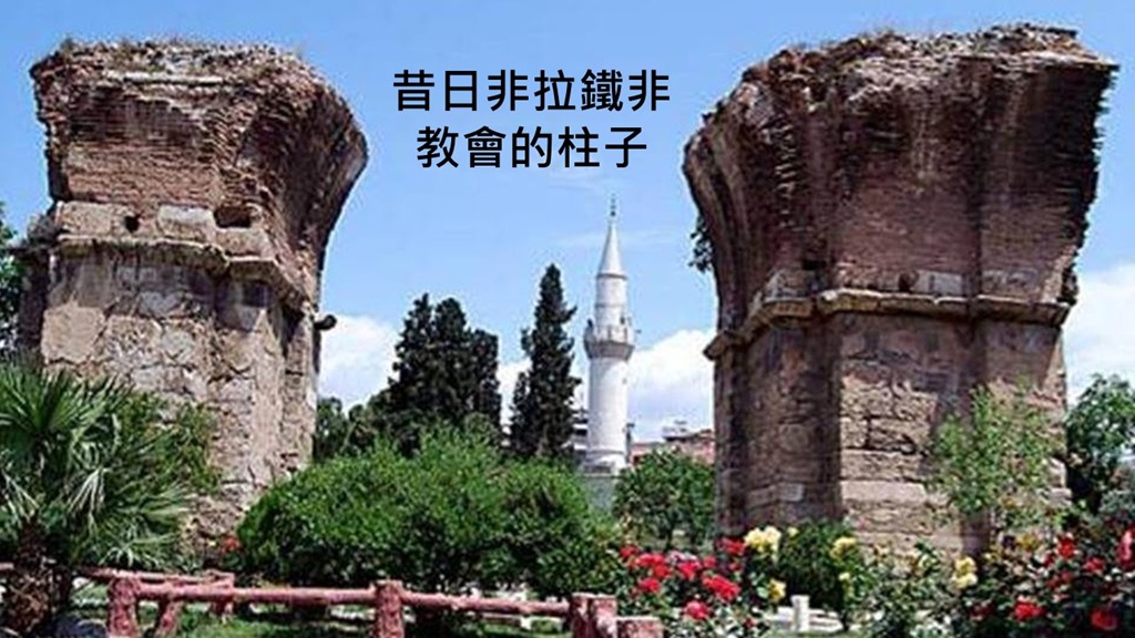 耶穌在寫給非拉鐵非教會的信上,沒有一句責備的話。這是個很小的教會,可能有些自卑,但他們很忠心,完全照主的吩咐去做,所以耶穌給他們許多鼓勵和應許。耶穌說祂會為他們開門,祂開的門,無人能關,耶穌會增加他們的影響力,也會在試煉來臨時,保守他們免於試煉。耶穌也應許要給他們新名,並且要讓他們在上帝的殿中作柱子。