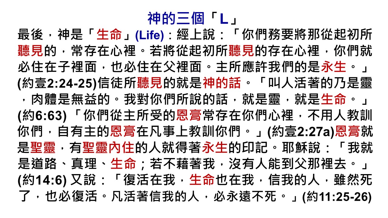 主耶穌說:「叫人活著的乃是靈,肉體是無益的。我對你們所說的話就是靈,就是生命。」(約6:63)